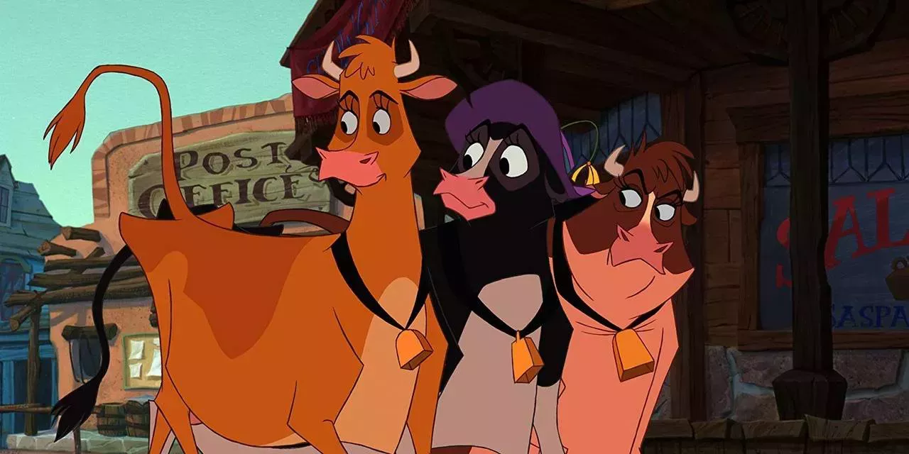 Home On the Range es un retroceso a los westerns clásicos más antiguos, del tipo de los que destacaban en la época de John Wayne. En lugar de recurrir a tropos de pistoleros y luchas familiares, la película sigue el robo de ganado desde la perspectiva del ganado, convirtiéndolo en cazarrecompensas. En cierto modo, la película es casi un homenaje infantil a la Trilogía del Dólar.