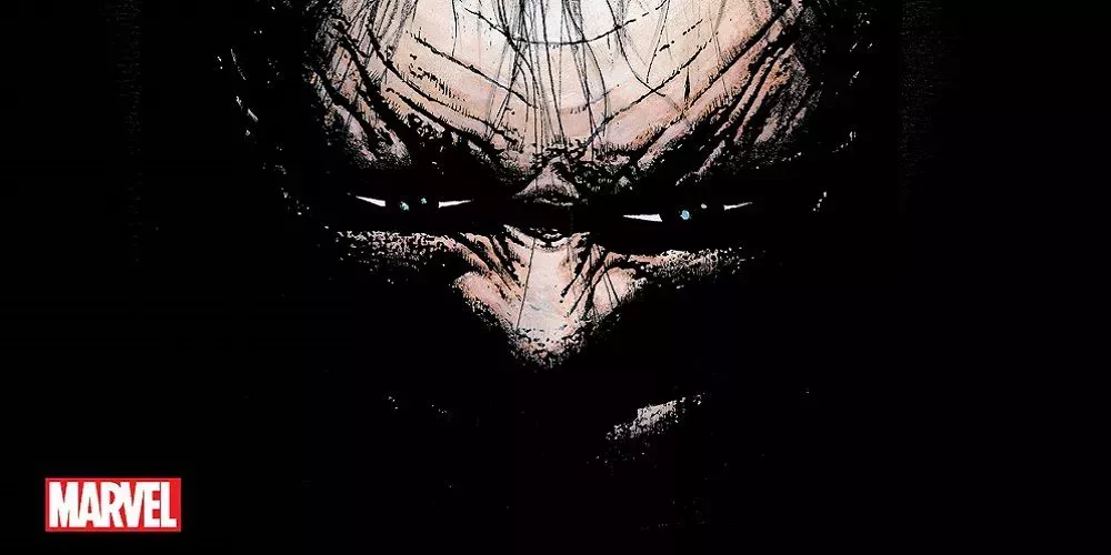 El número 5 deMarvel Year-In-Review dio a Kieth la oportunidad de ilustrar a más tipos malos. Además de la enorme forma de Venom en el fondo, la sombría imagen presentaba al villano Dientes de Sable y al sabihondo antihéroe Deadpool.