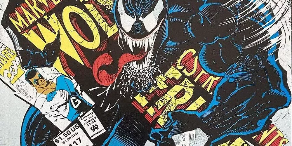 La portada de Marvel Comics Presents #117 llevó este recurso más allá. Venom no sólo salía de la portada del libro, sino que la destruía, derribando la mitad superior de la imagen y aplastando el título Marvel Comics Presents. Esta ilustración de Kieth causó una impresión duradera y demostró su espíritu iconoclasta.