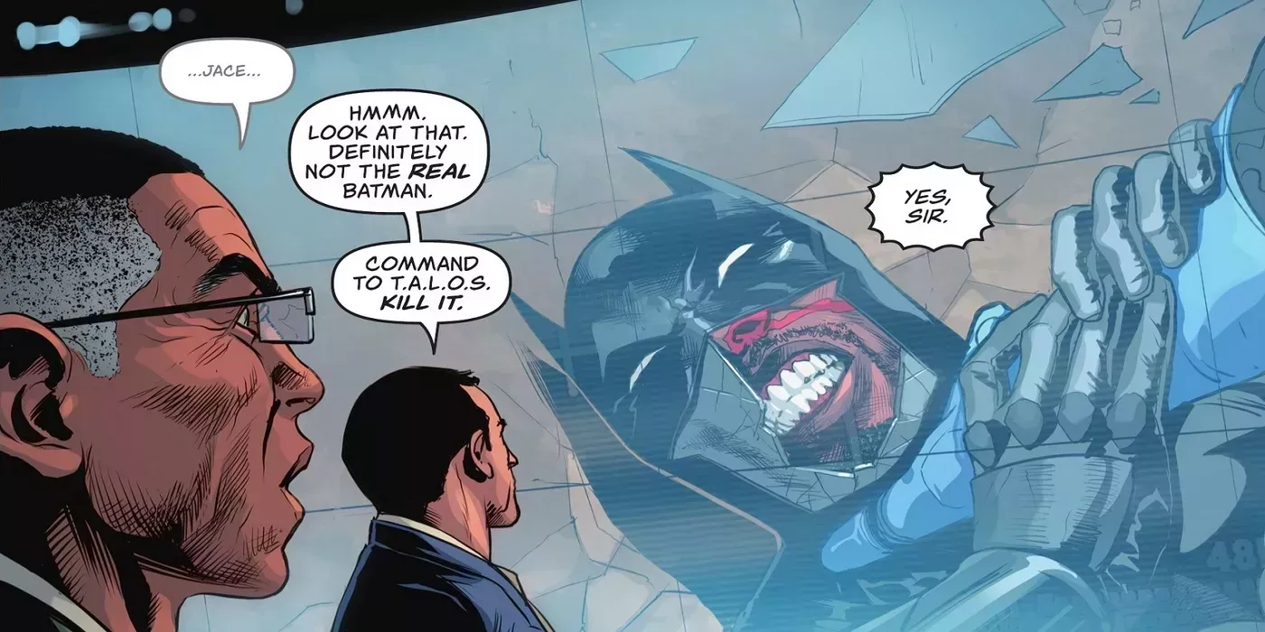I Am Batman afrontó los acontecimientos de Dark Crisis como cualquier otro libro de DC Comics. Durante ese tiempo, Jace fue atacado por Siniestro. Siniestro intentó utilizar sus poderes para hacer que Jace se rindiera, destruyendo su intento de estar a la altura del legado de Batman.