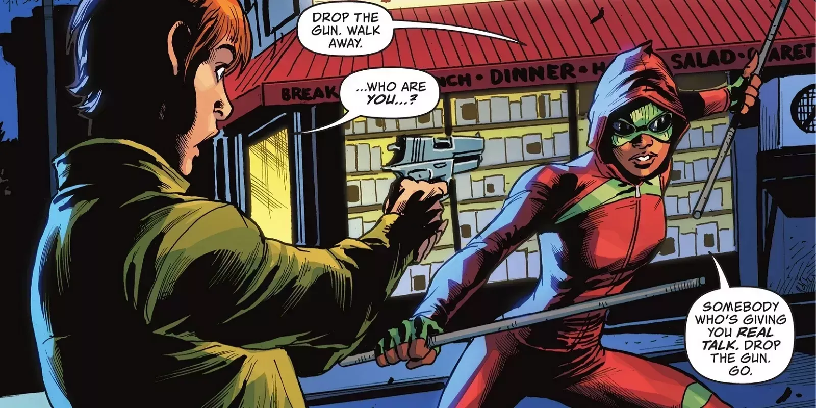Sin embargo, después de que Kaylyn, la nueva amiga de Tiffany, se meta en problemas con un miembro de una banda, ésta decide salir a la calle. Aunque todavía no tiene traje ni mucho nombre, Tiffany sigue demostrando su eficacia en las calles y en las páginas de I Am Batman.
