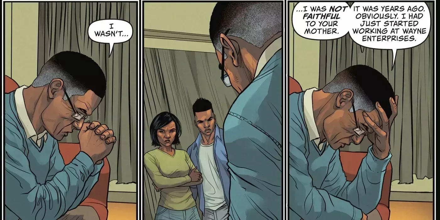 Aunque I Am Batman aún no ha llegado tan lejos, Lucius, el padre de Jace, ya ha dejado entrever quién se esconde bajo la máscara. Mientras Jace luchaba contra los Pacificadores del siguiente nivel, su máscara se rasgó parcialmente. Con Lucius observando a través de las cámaras de los Pacificadores, reconoció a su hijo y se dio cuenta de que se había equivocado al perseguir a los héroes enmascarados.