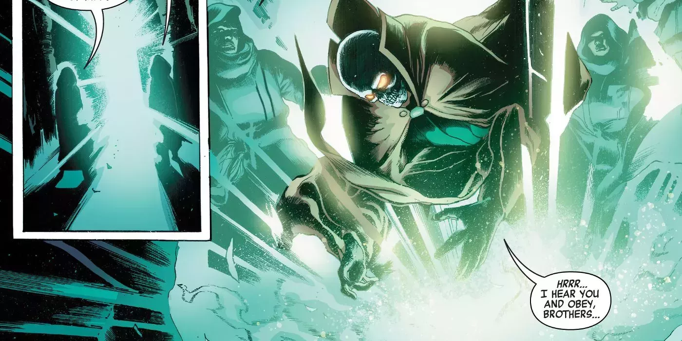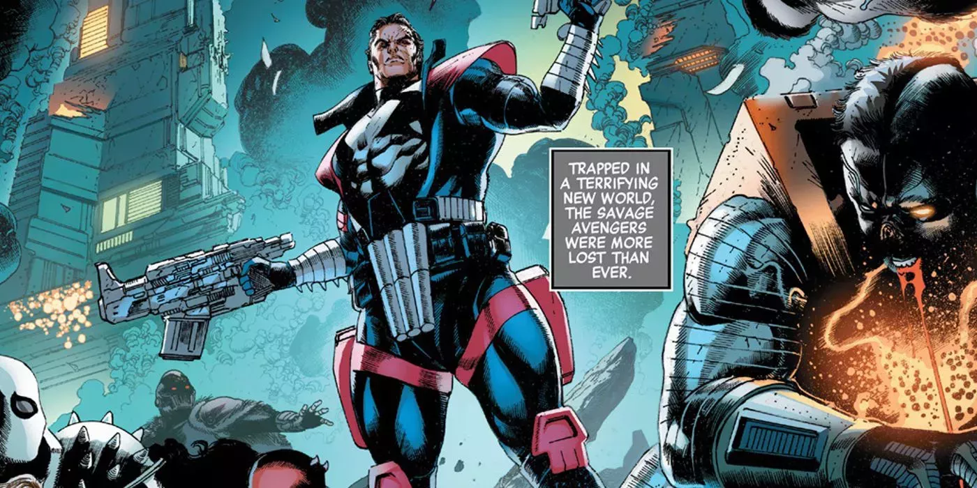 Después, se revela que Conan tuvo que matar a Thulsa Doom porque la única forma de enviar a Set de vuelta es usar la sangre de alguien reencarnado dos veces. Aún más impactante, el final del número revela que los Vengadores Salvajes ya no están en la Era Hiboria. En su lugar, se han transportado de repente al año 2099, donde aparece el Castigador Jake Gallows y les pregunta por su identidad. Esto da comienzo a una segunda mitad de Savage Avengers Vol. 2 tremendamente impredecible.