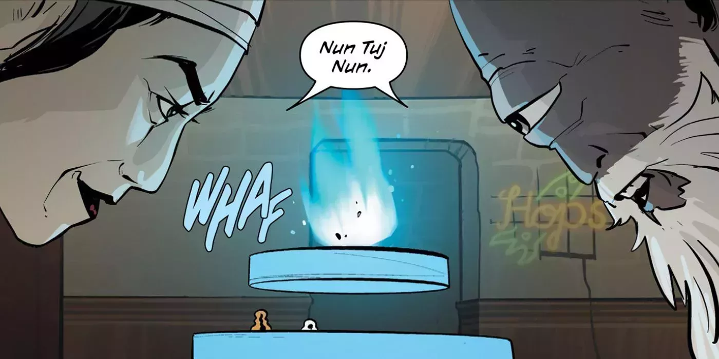 Hazel y su familia siempre han estado huyendo, pero durante su infancia, de vez en cuando conseguía asentarse y relajarse. La familia visitó al escritor D. Oswald Heist, cuyo libro unió a la pareja. En una escena, Alana, Marko, Klara, la madre de Marko, y Heist juegan a un juego de mesa llamado "Nun Tuj Nun", que según Heist es el mejor del universo.