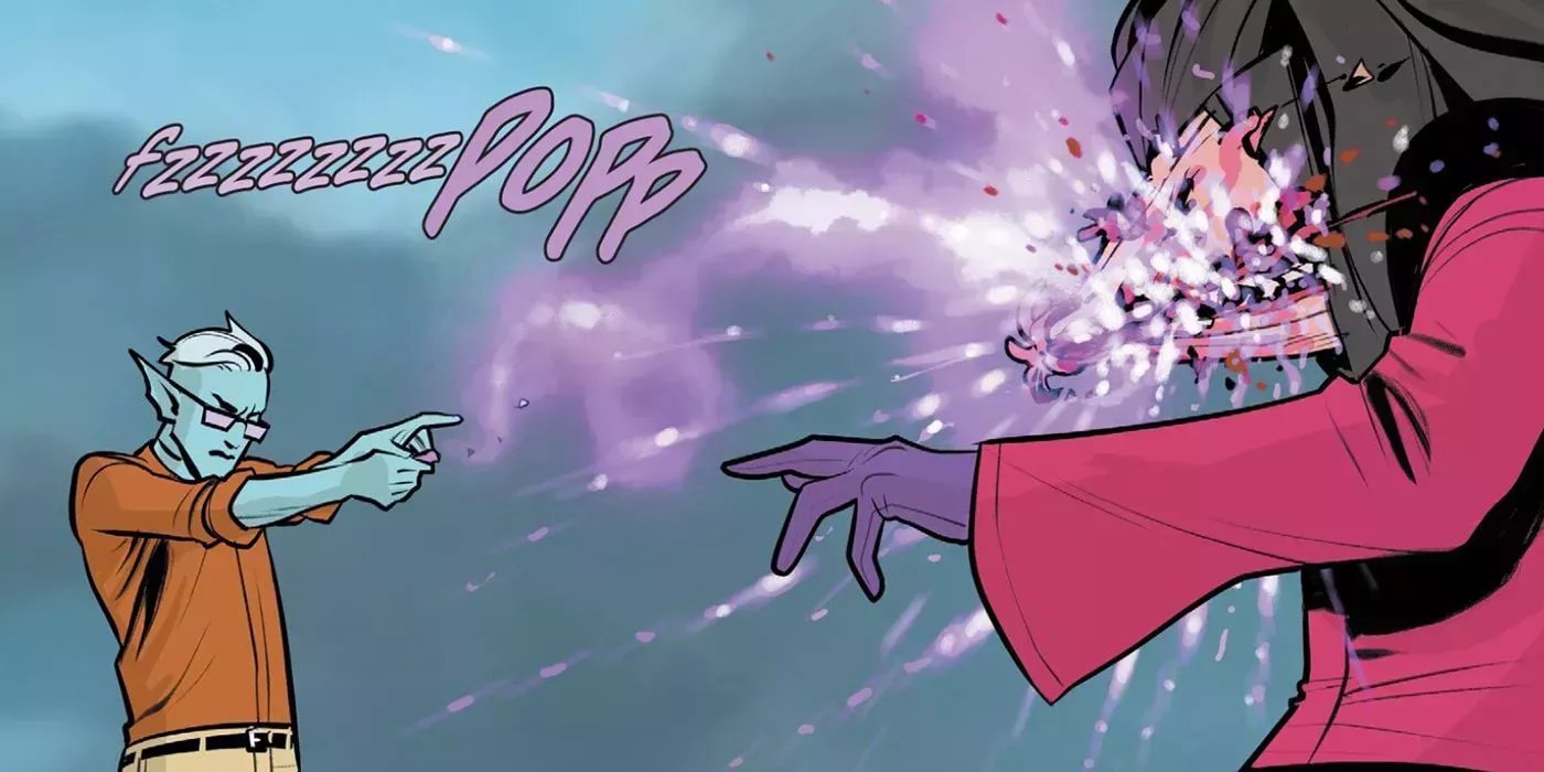 Ianthe se burló de Upsher, el compañero reportero (tanto profesional como romántico) del fotógrafo, y éste esperó su momento antes de dispararle en la cara con magia, salvando a todos. Upsher no era una persona violenta, pero la violencia que le rodeaba le obligó a actuar. El trágico pero importante mensaje de cómo la violencia propaga más violencia hace de Saga un cómic de lectura obligada.