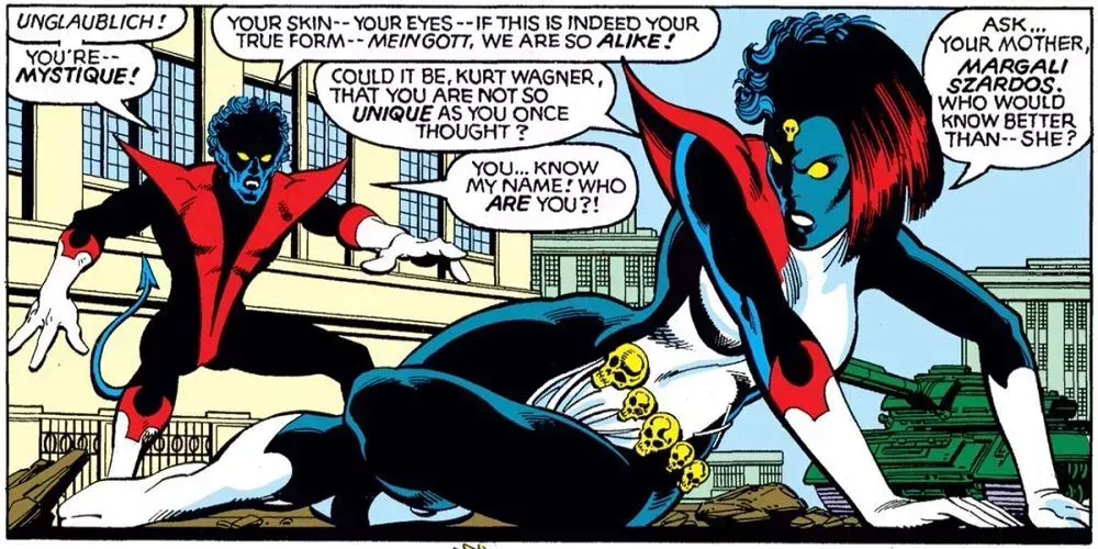 La cuestión es si lo que Mística presenta como su apariencia habitual es como nació. En una ocasión, Mística estuvo a punto de perder la cordura cuando añadió el lavado de cerebro para completar su disfraz de agente del FBI Val Cooper. Es probable que, a lo largo de cientos de años, perdiera de vista su verdadera identidad varias veces. Depende de lo profunda que sea la imitación y de cuánto tiempo se mantenga.
