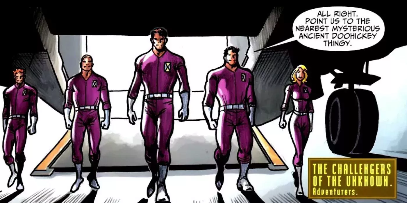 Los Challengers of the Unknown son un equipo de aventureros, cada uno con sus propias habilidades. El equipo es increíblemente similar a Doc Savage y sus amigos, los Cinco Fabulosos, con inspiración añadida de Buck Rogers en los trajes. Juntos viajan por el universo luchando contra monstruos y explorando lo desconocido.