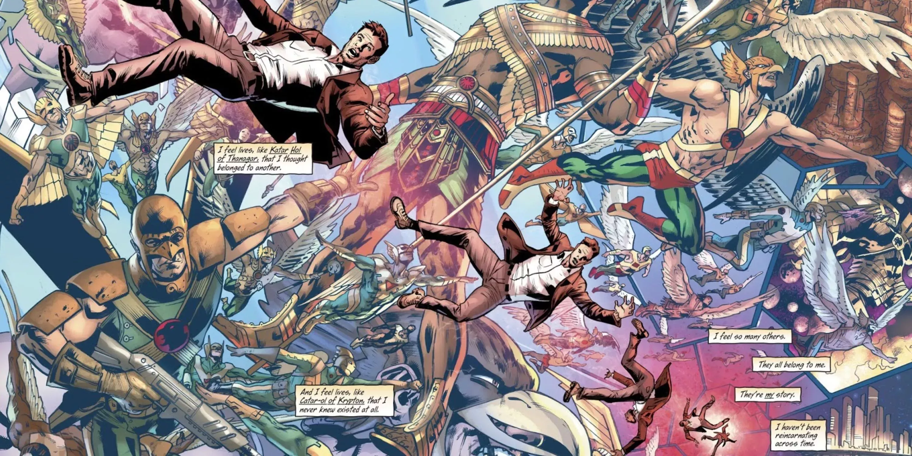 Si la inspiración de Hawkman en los cómics de Flash Gordon no fuera suficiente para demostrar su historia pulp, la profesión de arqueólogo de su alter ego debería sellar el acuerdo. Además, muchas de sus vidas anteriores se inspiraron directamente en la ficción pulp, desde una versión rocketeer de sí mismo hasta un pistolero.