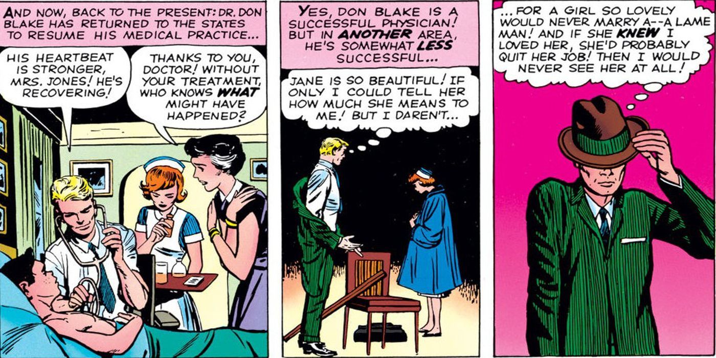 En su lugar, el escritor Stan Lee y los artistas Jack Kirby y Lieber la presentaron en el siguiente número. Sin embargo, enseguida se supo que Thor -en su papel cotidiano de Dr. Donald Blake- y Jane sentían algo por el otro. Por desgracia, ambos ocultaron el deseo del otro.