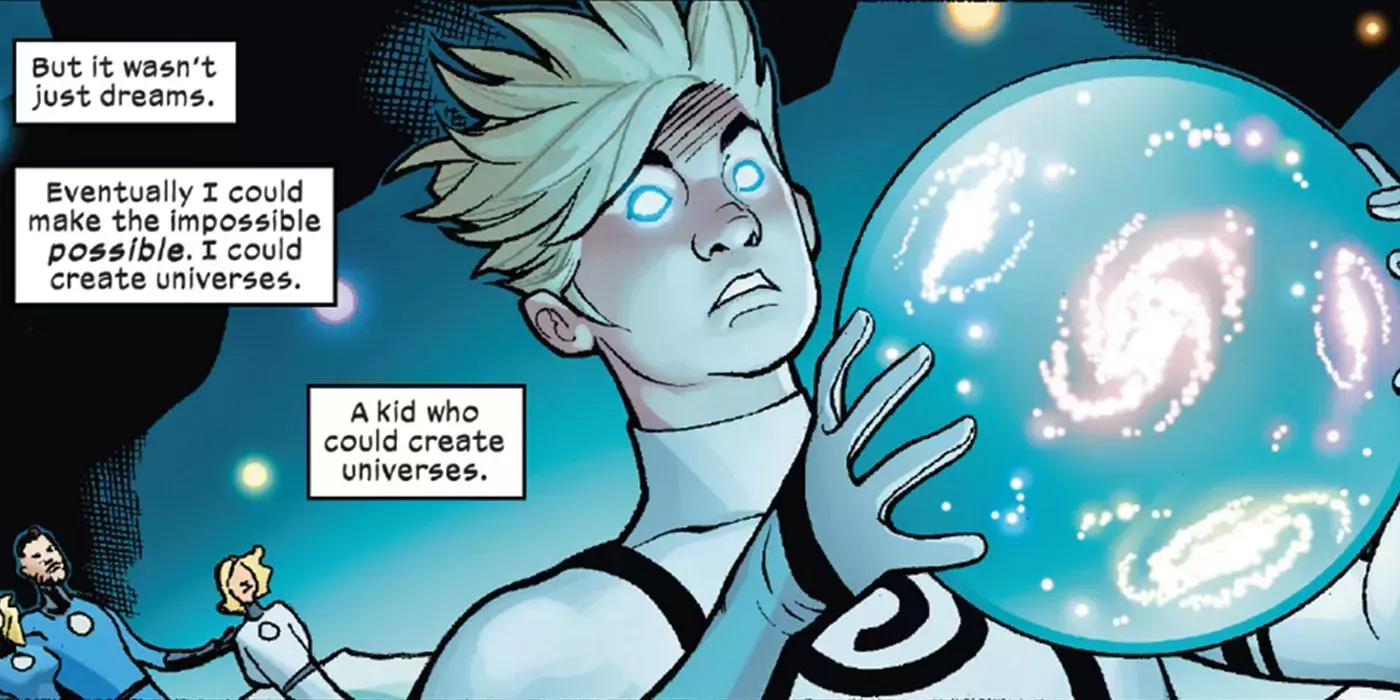Franklin Richards lleva décadas siendo un ser de nivel cósmico, pero su poder nunca se mantiene. De vez en cuando, cuando sus poderes funcionan, Franklin envejece y se convierte en un superhéroe capaz de hacer cualquier cosa. Por muy importante que sea el equipo, hacer que un miembro de Los Cuatro Fantásticos sea capaz de alterar la realidad le quita emoción al asunto.