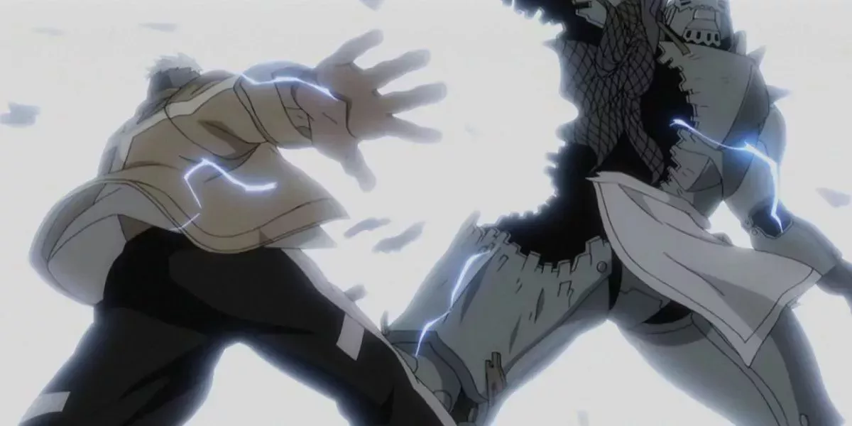 En su primera interacción con Scar, Edward y Alphonse Elrich, deFullmetal Alchemist, son claramente superados en todos los sentidos. Scar se deshace fácilmente de los dos hermanos, hasta el punto de que Ed acepta la derrota con la condición de que Scar deje vivir a su hermano. Aunque se salvan en el último momento, el impacto psicológico de ese encuentro hace mella en la mente de Ed.