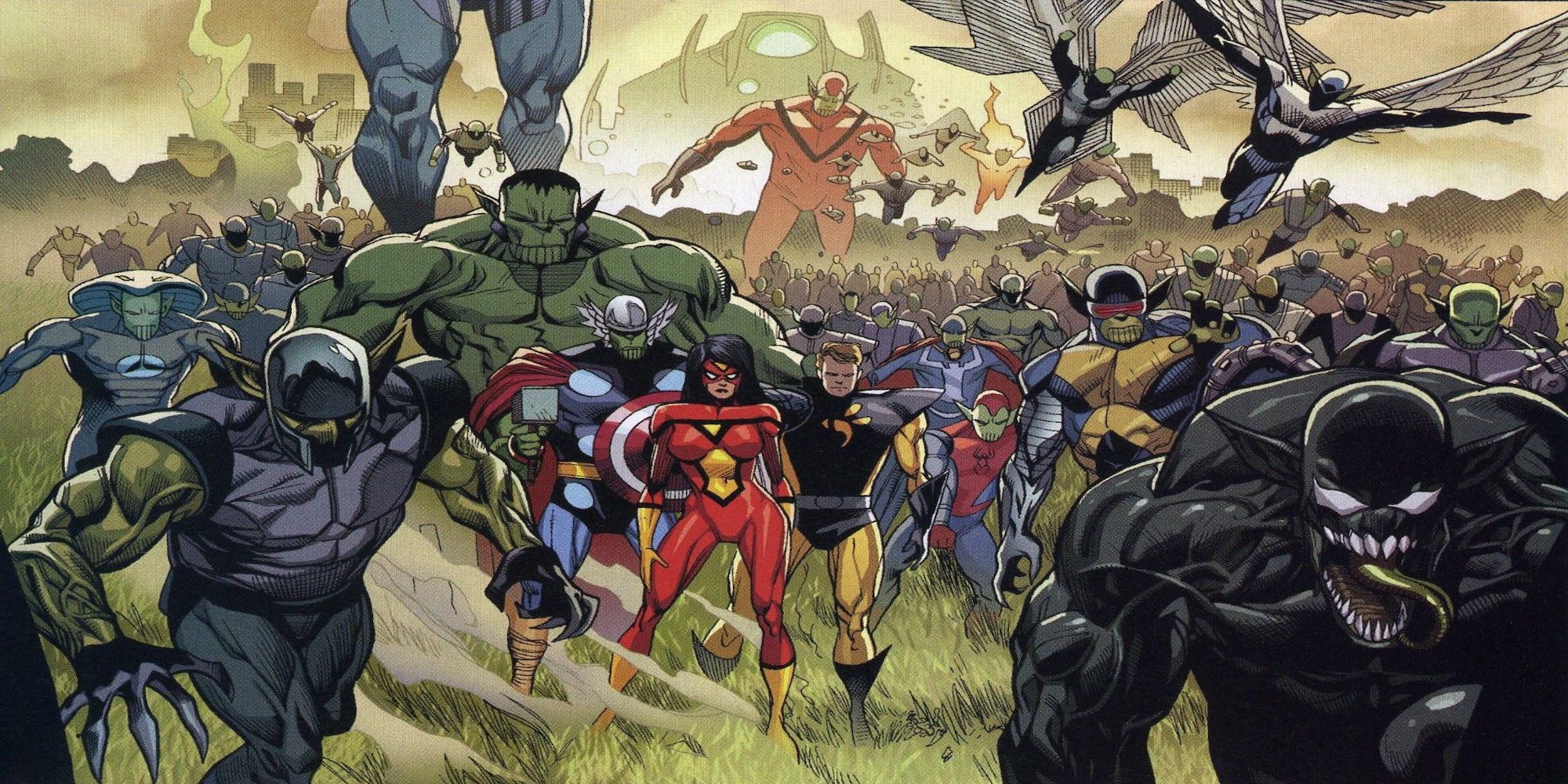 Esta serie de ocho números fue creada por Brian Michael Bendis y Leinil Francis Yu, y en ella los alienígenas Skrulls cambian de forma para sustituir a importantes personajes del MCU. En Far From Home , se utilizó con humor e inteligencia, y Peter Parker descubrió que Nick Fury había sido sustituido por un Skrull.