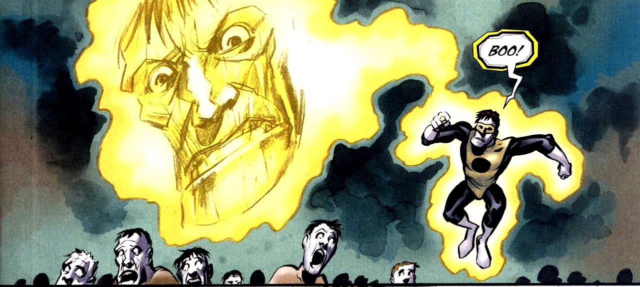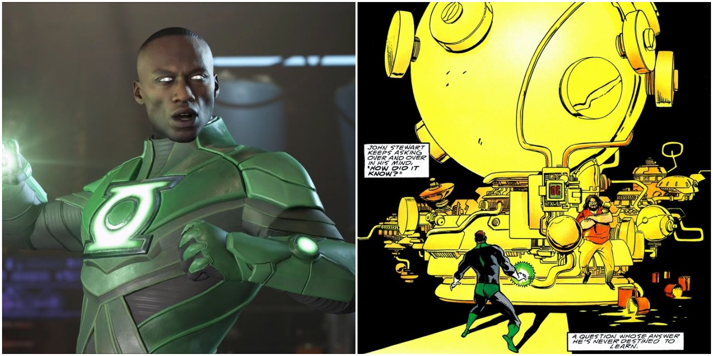Pero a finales de la década de 1980, John Stewart era infame por tener mal genio y ser muy arrogante. Los veteranos dicen que "el orgullo precede a una gran caída". John Stewart puede atestiguar esa afirmación, ya que su ego llevó a la destrucción de un planeta entero. Durante la serie original de la Odisea Cósmica de DC, John Stewart y The Martian Manhunter fueron enviados para desactivar una bomba. Stewart no quería que el cazador de hombres le robara el protagonismo, así que envió al marciano lejos. Cuando John encontró el explosivo, descubrió que no podía desarmarlo... porque era amarillo.