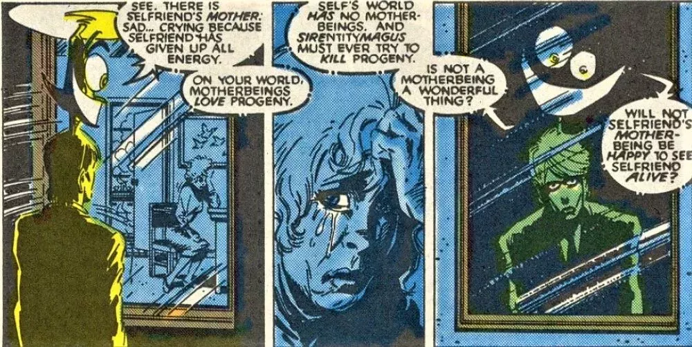 Algunas de las mejores historias de las numerosas series de los X-Men se centran en los mutantes que se reúnen y socializan, con pocas amenazas importantes de las que preocuparse. New Mutants #21 -escrito por Chris Claremont, dibujado y entintado por Bill Sienkiewicz- "Fiesta de pijamas", es tanto un divertido número para pasar el rato como una introducción a Warlock, un pilar de los New Mutants.
