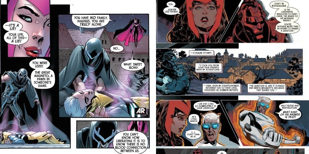 A lo largo de la mayor parte de su historia de historietas, la Bruja Escarlata y Quicksilver fueron los hijos de Magneto - a menudo sirviendo con los Vengadores y los X-Men consiguiendo también su tiempo en el centro de atención. Sin embargo, esto cambió más tarde ya que los cómics más recientes muestran que la Bruja Escarlata y Azogue nunca fueron hijos de Magneto. De hecho, ni siquiera fueron mutantes - ambos sirvieron como piedras angulares de su identidad y varias historias.