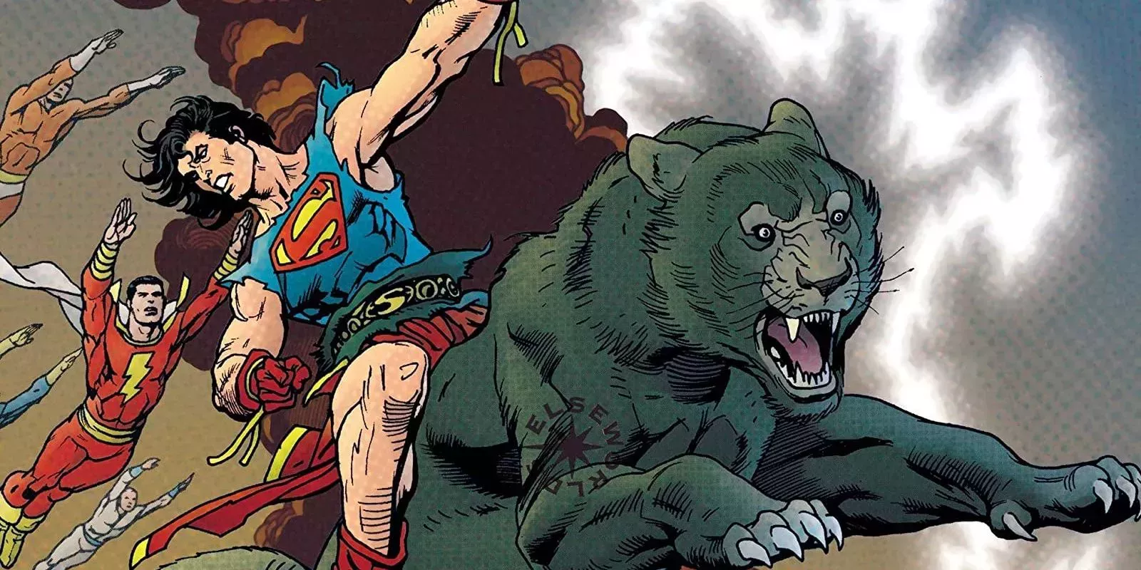 Eso es hasta que Shazam se pone celoso del amor de Superman y Wonder Woman y comienza a derribar todo lo que los héroes intentaron construir. Tras darse cuenta de que el planeta está condenado, Clark hace lo más lógico y lanza a su hijo recién nacido al espacio con un anillo de Linterna Verde con la esperanza de que todo salga bien.