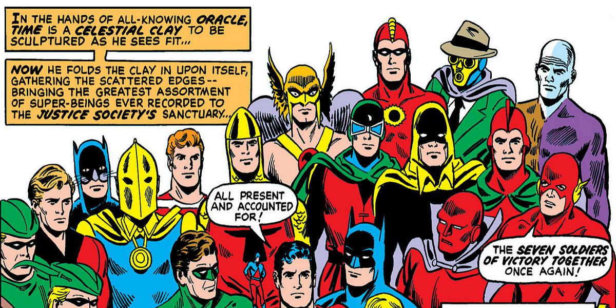 Los Siete Soldados tardaron bastante tiempo en volver a los c贸mics. De hecho, no tuvo lugar hasta una reuni贸n anual de la Liga de la Justicia y la Sociedad de la Justicia en 1972. Incluso entonces, ning煤n miembro de ninguno de los dos equipos sab铆a que exist铆an. Por suerte, un ser conocido como Or谩culo describe su destino.