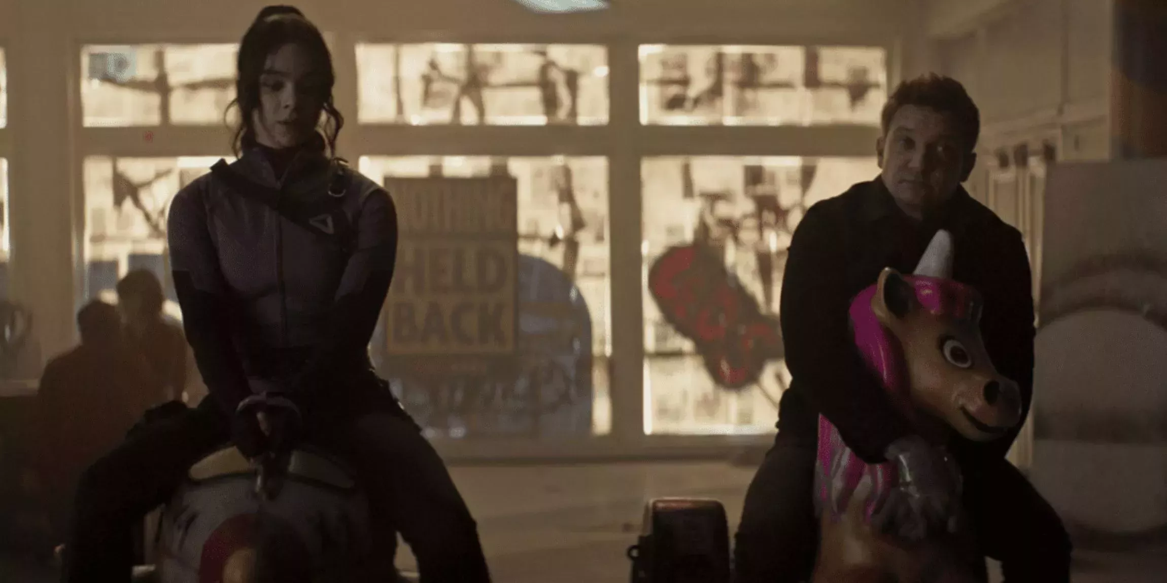 Cuando Kate y Clint son retenidos por miembros de la Mafia del Chándal en los episodios 2 y 3 de la serie, las escenas muestran luces que parpadean detrás de la pareja. Según el director Rhys Thomas, el patrón de parpadeo no es aleatorio, sino que refleja la fecha de la primera aparición de Kate Bishop en una serie de cómics de Ojo de Halcón. En realidad, el personaje debutó en los cómics de los Jóvenes Vengadores, pero protagonizó por primera vez una serie de Ojo de Halcón en el libro de 2012 de Matt Fraction y David Aja, que parece haber inspirado en gran medida la serie de Disney+.