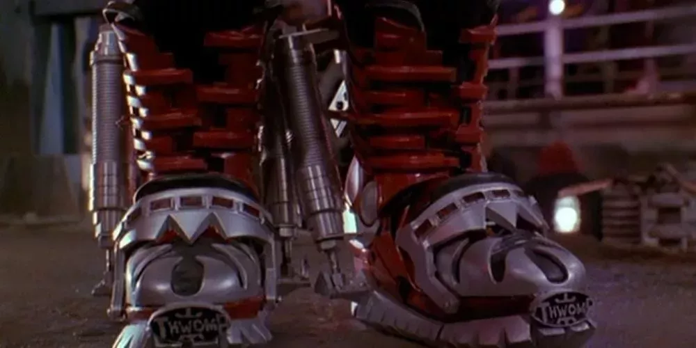 Aunque en la película no hay Thwomps tal y como se representan en el juego, hay dos referencias importantes a ellos. La primera es el nombre de "Thwomp Stompers", que es lo que son esas extrañas botas futuristas (utilizadas posteriormente en la película de acción Face/Off) que Mario y Luigi llevan para saltar más alto (básicamente la versión de ciencia ficción de un potenciador).