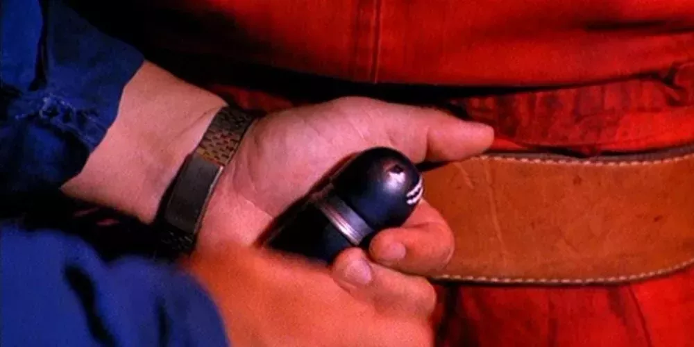 Sin embargo, en la película, no sólo son diminutos (caben en la palma de la mano), sino que no son armas en absoluto, sino cartuchos de energía para las extrañas botas Thwomp Stomper de Mario Bros. Y, como se mencionó en las dos entradas anteriores, también se ve en el fondo un cartel de neón de un bar llamado "Bullet Bills".