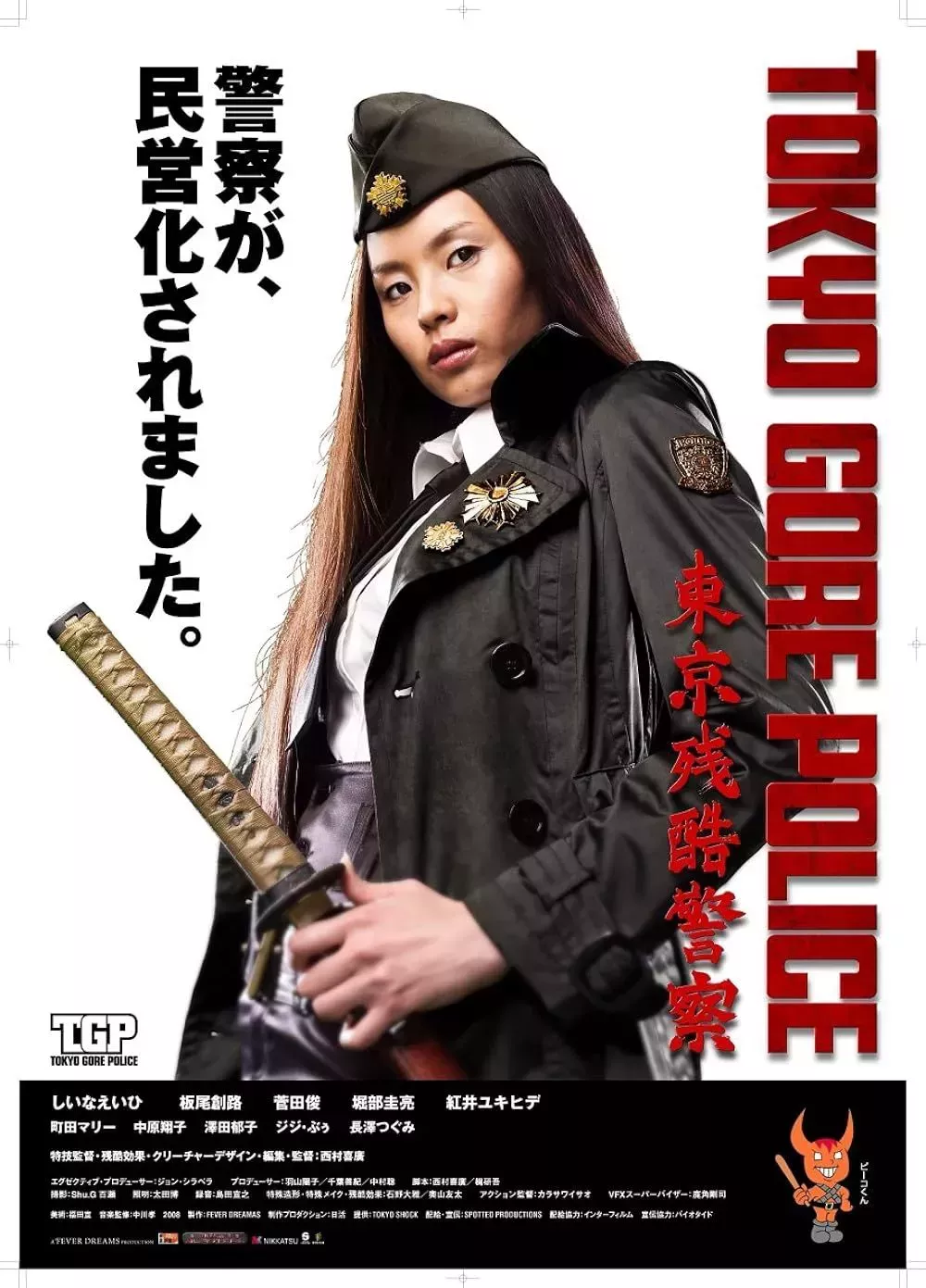 Aunque se trata de una película bastante oscura del género J-splatter, Tokyo Gore Police suele figurar en las listas de las diez películas más sangrientas de la historia. Sin duda, hace honor al título con la historia de una unidad especial de policía que caza monstruos biomecánicos conocidos como "Ingenieros" de la forma más sangrienta posible. La "Cazadora de Ingenieros" Ruka es hábil con espadas, motosierras o armas de fuego, y siempre deja un río de carnicería a su paso.