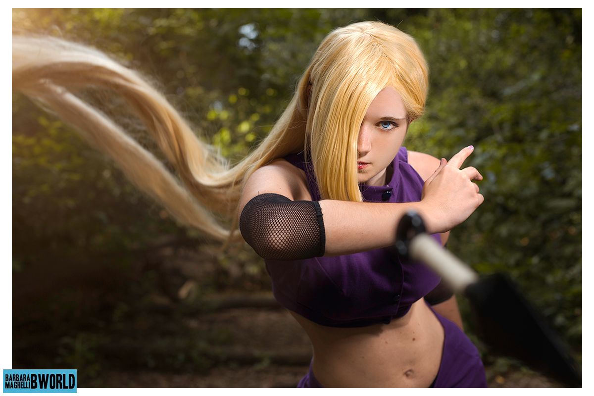 Aunque Ino es una de las chicas más guapas de la serie, también es una de las más aterradoras si uno es tan idiota como para juzgarla sólo por su apariencia. Ha golpeado a numerosos personajes masculinos por dudar de ella o por hacer comentarios sexistas, y su pose de poder recreada por liar_sly_fox la hace parecer más intimidante que incluso el más temible de los ninjas pícaros. La elección de estar rodeada de una gigantesca corona de flores fue un gran toque que asiente a la profesión de la familia de Ino.