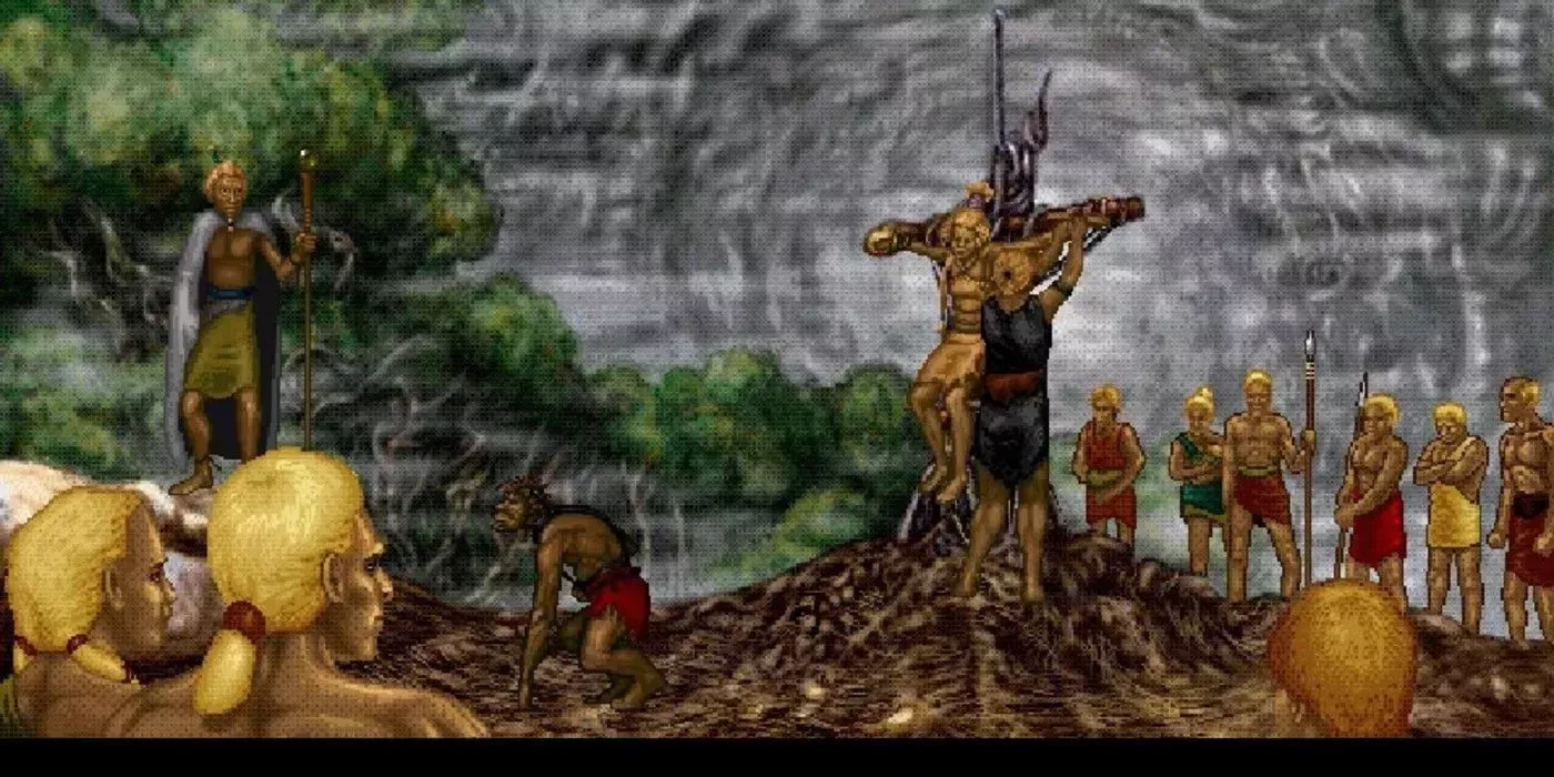 I Have No Mouth and I Must Scream (No tengo boca y debo gritar ) es un juego de apuntar y hacer clic de 1995 basado en un relato corto del mismo nombre escrito por el codiseñador del propio juego. Se desarrolla en una distopÃa dirigida por una IA que está torturando a los últimos miembros de la raza humana con aventuras metafóricas basadas en sus defectos individuales.