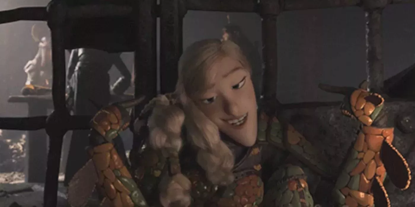Una de las principales escenas de Cómo entrenar a tu dragón: El Mundo Oculto es una conversación entre Ruffnut y el antagonista, Grimmel. Tras ser capturada por Grimmel, Ruffnut intenta molestarle para que la libere, pero involuntariamente traiciona información fundamental sobre Hipo, Desdentao y Burke. La escena parece forzada, como si no hubiera una forma más orgánica de introducir el conflicto en la trama.