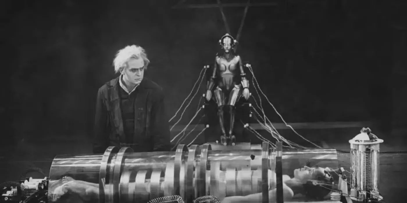Metrópolis es una influyente película alemana de ciencia ficción. Fritz Lang , padre del cine de ciencia ficción , traslada al espectador a un futuro distópico regido por el hipercapitalismo y la división de clases. A través de los ojos de un joven rico, Freder, que descubre la verdadera condición en la que vive la otra mitad, la película le ve ayudando a la rebelde maestra Maria y enfrentándose a su padre. La película traza drásticos contrastes entre "La ciudad de los obreros", donde los trabajadores se ven obligados a realizar trabajos inhumanos y despojados de su identidad, y "El club de los hijos", representado como un paisaje utópico.