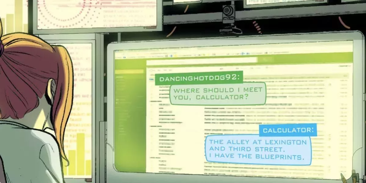 La contraparte villana de Oráculo era Calculadora, que prestaba servicios a otros villanos. Oráculo encontró una puerta trasera en el sistema de Calculadora y se comunicó con sus contactos. Haciéndose pasar por Calculadora sin ser detectada, Bárbara obtuvo información sobre varios crímenes y los detuvo antes de que se cometieran.