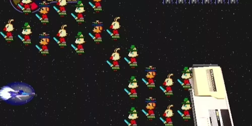 Segagaga cuenta con abundantes cameos de Sega para sus enemigos genéricos, pero la batalla final del juego se inspira en el clásico shooter Thunder Force. Las distintas consolas de Sega se convierten en mechas gigantes que atacan la Tierra. Resulta extrañamente satisfactorio destruir naves nodriza con forma de Sega Genesis y Sega Saturn.