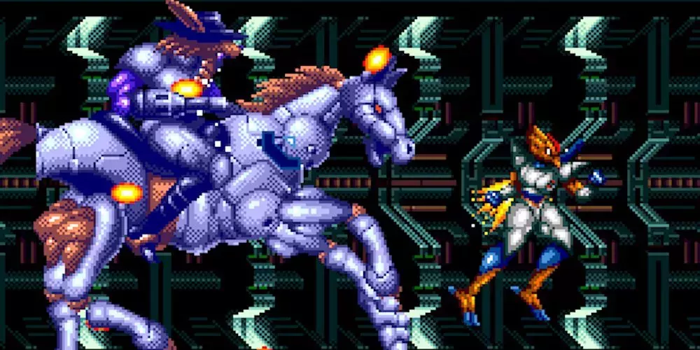 Cada jefe de este juego es un complicado híbrido mecánico que combina más ideas de las que debería. Todas estas creaciones tipo Mad Lib destacan, pero Wolfgunblood Garopa es un hombre lobo enfadado que monta un caballo cíborg. Nada de esto tiene sentido, pero es un combate divertido, y tiene un aspecto increíble en la Genesis.