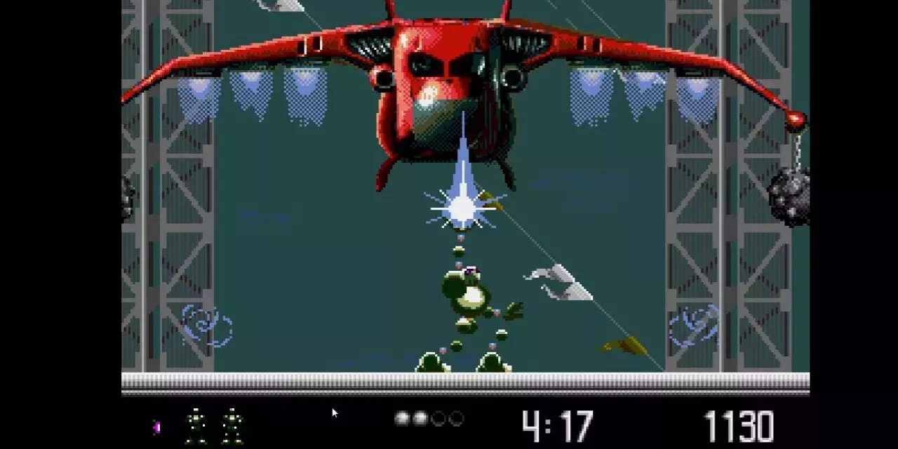 Uno de los encuentros con jefes más extraños de Vectorman es un avión que tiene dos mazas del tamaño de una bola de demolición que cuelgan de sus alas. No hay ninguna cara estrafalaria añadida a esta pelea. Es sólo un avión. La encarnizada pelea de Vectorman con un agresivo avión también es anterior a la batalla del jefe del helicóptero de Ninja Gaiden en más de una década. Sega lo hizo primero.
