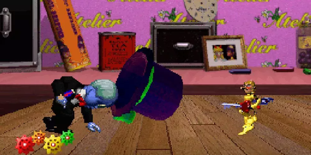 Dandy Bob, un torpe muñeco de ventrílocuo que utiliza su sombrero de copa a la defensiva, es un encuentro con el jefe que resulta molesto. En cualquier contexto, es una imagen chocante, pero la versión americana de Clockwork Knight colorea a Dandy Bob de azul, en lugar de su color melocotón original, lo que hace que este gran bebé parezca asfixiado.