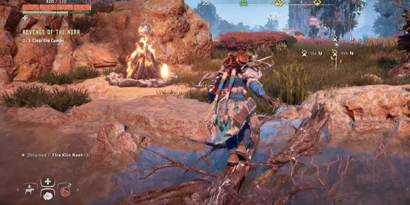 El Foco de Aloy en Horizon Zero Dawn constituye un fragmento del HUD del juego, pero su uso es muy importante para la historia y para participar en el combate. El primer uso del objeto hace que Aloy rastree las trayectorias de las máquinas de la patrulla, utilizándolo para moverse con sigilo por la hierba alta. El juego utiliza bastante bien los iconos para mostrar los consumibles, la munición y las armas, así como el punto de ruta hacia el objetivo de la misión.