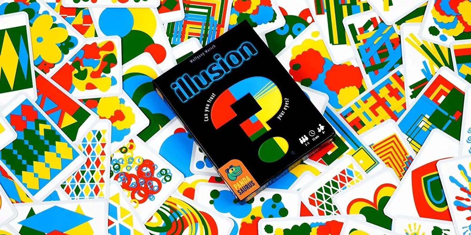 En Illusion, se coloca una carta sobre la mesa y una flecha junto a ella. Las cartas muestran patrones y formas extrañas compuestas por 4 colores: verde, amarillo, rojo y azul. La flecha muestra en qué color se centra la ronda. Si sale una flecha azul, los jugadores deben jugar cartas y ordenarlas de manera que la carta más cercana a la flecha tenga la menor cantidad de azul y la más lejana tenga la mayor cantidad. El juego hace que los jugadores se cuestionen a sà mismos y se sorprendan al revelar lo equivocados o acertados que estaban todos.