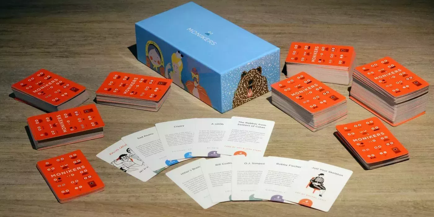 Monikers se basa en el juego Celebrities, pero cuenta con un grupo más amplio de personas conocidas entre las que elegir. Mantener la cara seria durante este juego es casi más difícil que realizar algunas imitaciones.