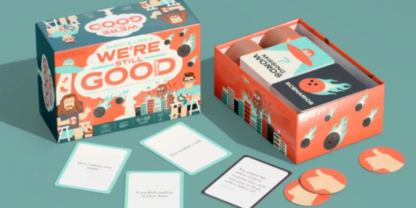 We're Still Good es un nuevo juego de cartas de los internautas Rhett y Link, de Good Mythical Morning. El juego se basa en la ya icónica frase de su programa, en la que afirman que "seguimos siendo buenos" incluso cuando algo va mal. El juego ofrece mucha diversión y se centra en la positividad, dando un buen giro a un mal escenario.