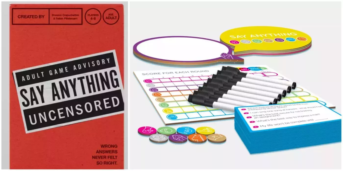 El preguntador elige en secreto una respuesta con una ruleta, y los jugadores deben apostar por la respuesta que creen que será seleccionada. Los jugadores apuestan fichas y el que tenga más fichas al final gana. Para reírse un poco más y darle un toque picante, Say Anything: Uncensored hace preguntas más atrevidas.
