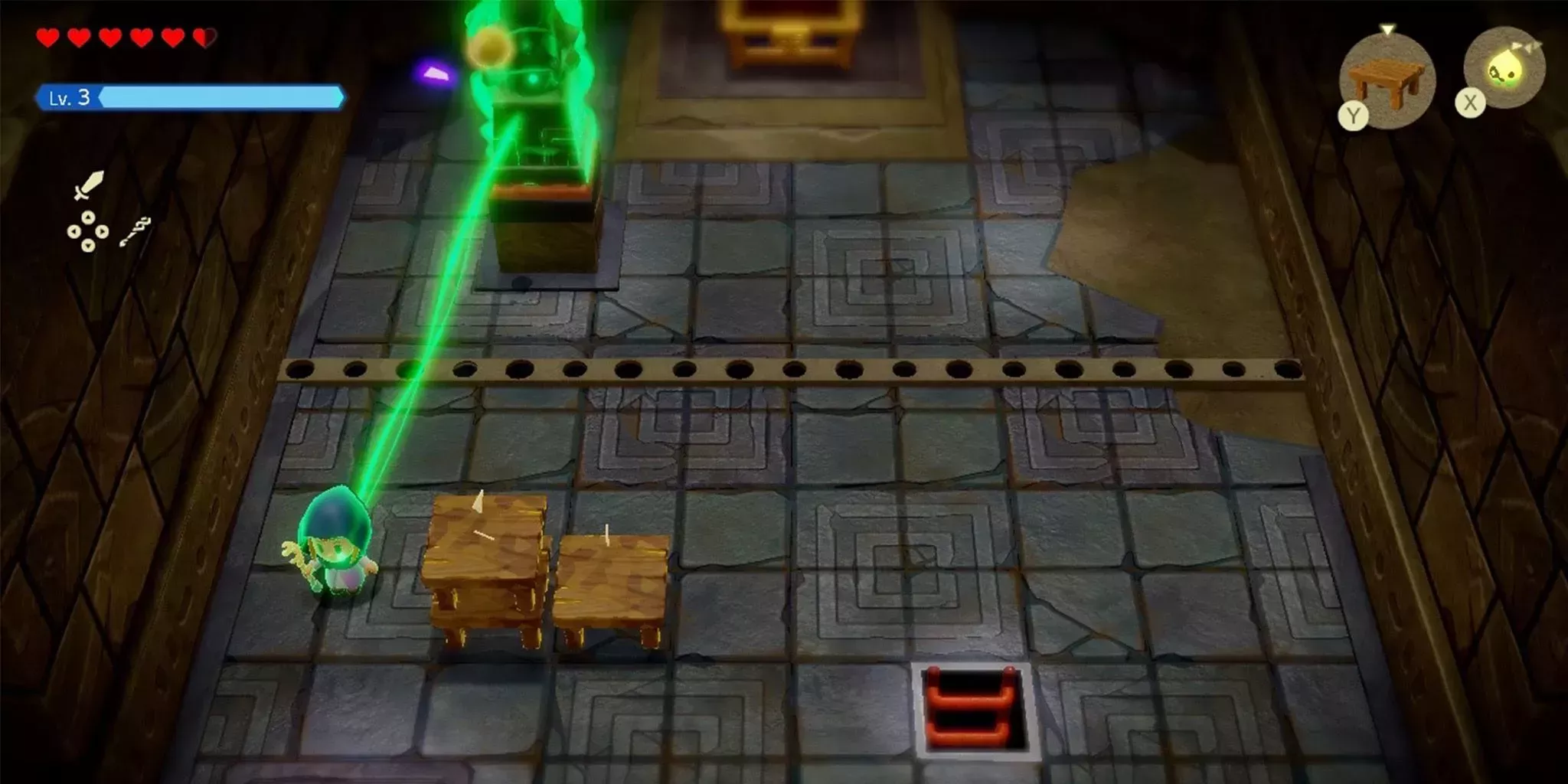 La rama más tradicional de la serie Zelda es conocida por sus objetos. En esencia, se trata de distintas habilidades que se desbloquean a lo largo del juego y que sirven para que los jugadores accedan a más contenido. Aunque Echoes no los elimina por completo, pasan a un segundo plano frente a la mecánica principal de Echo a la que sirven de apoyo. Esta mecánica define el juego en su conjunto y hace que cada puzle tenga la sensación de basarse en experiencias anteriores.