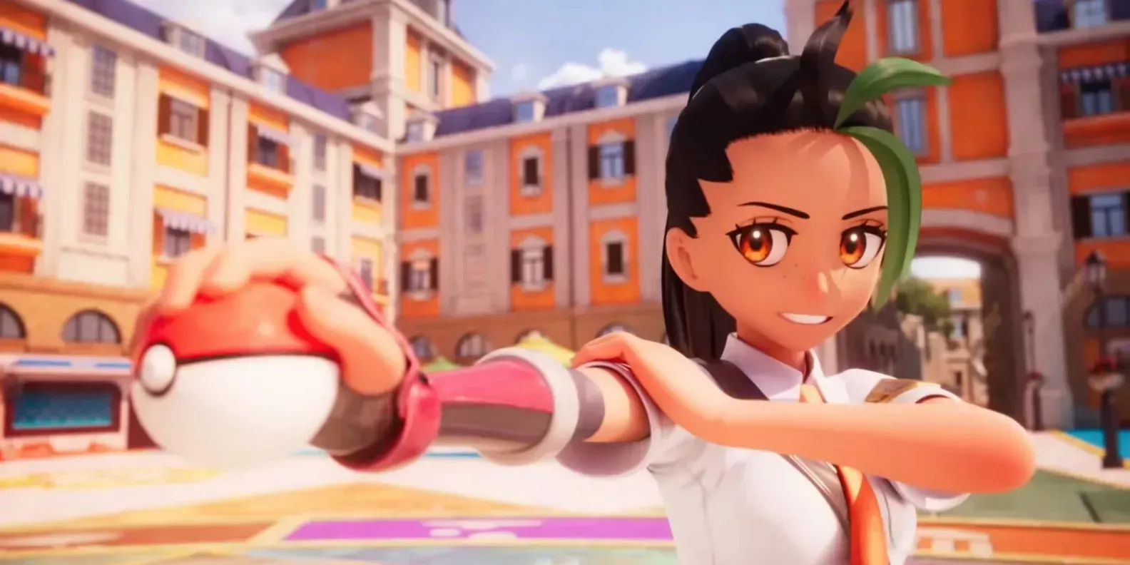 Nemona es una chica enérgica y divertida a la que le encanta luchar con Pokémon. Como entrenadora Pokémon, es una de las campeonas mejor clasificadas de Paldea.