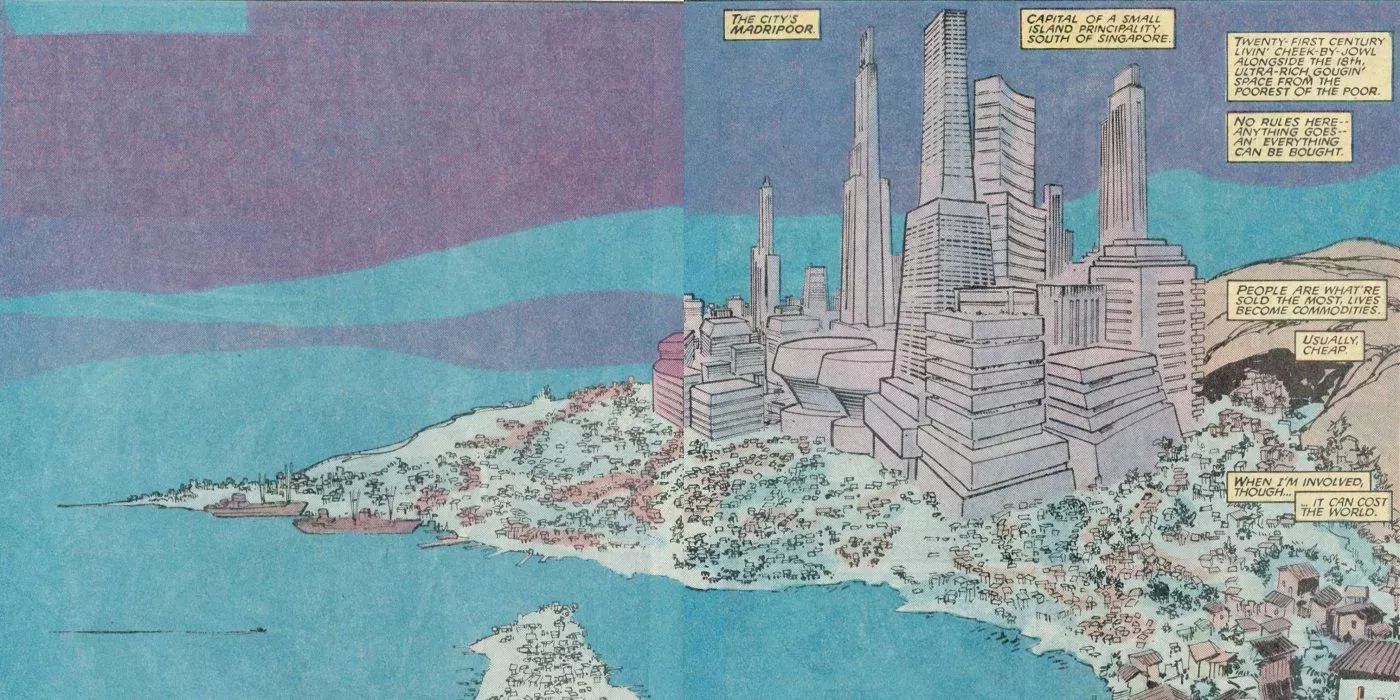 Madripoor es una enorme ciudad-isla sin ley que existe desde mediados de los 80 y que suele estar bajo el control de HYDRA. Está estrechamente relacionada con Lobezno, ya que a menudo se le considera el único héroe lo bastante resistente como para sobrevivir allí y moralmente dudoso como para tratar con su población.