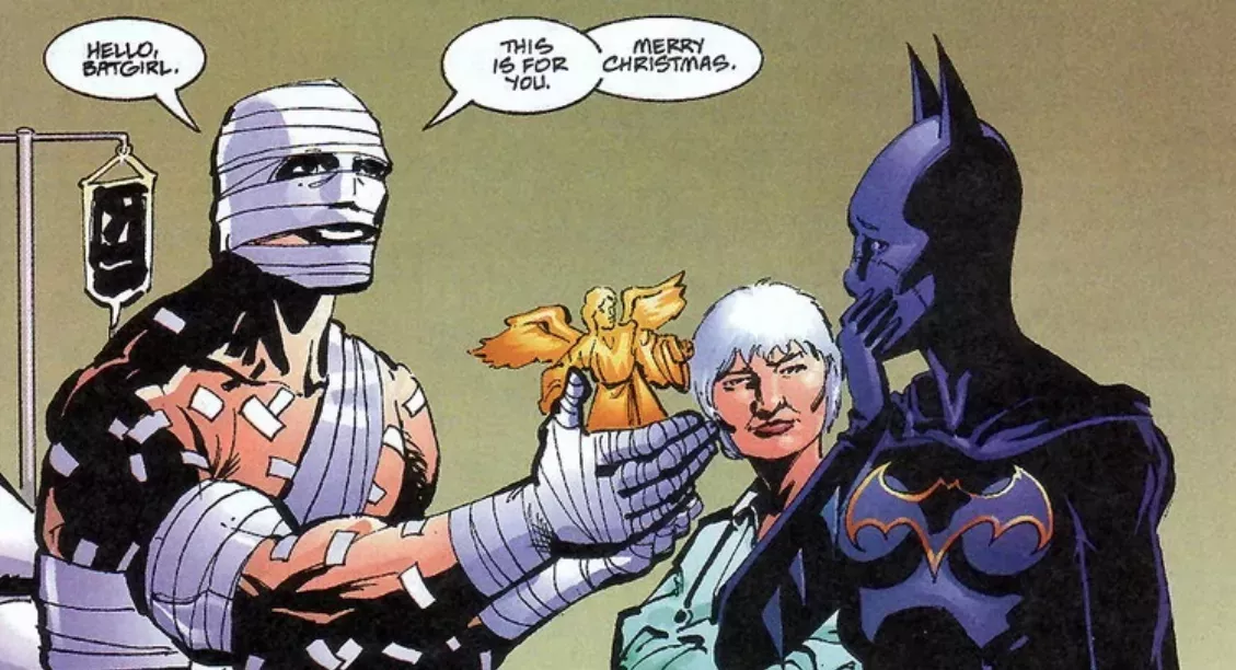 Esta amistad culminó en un momento decisivo durante las Navidades de 1999, cuando el Joker secuestró a varios niños y mató a la mujer del comisario Gordon, Sarah Essen-Gordon. Mientras seguía la pista del Joker, Cassandra cayó en una trampa en la que un Árbol de Navidad que parecía una pista estaba lleno de explosivos. Durante Batman: Knightfall, Azrael habría antepuesto la misión a salvar la vida de su compañero, pero después de pasar todo este tiempo creciendo como personaje, el Ángel Vengador no lo dudó y se llevó la peor parte de la explosión para salvar a su amigo, quemándose gravemente como resultado.