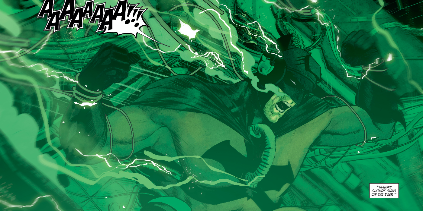 Bane y su equipo de villanos atraparon a Batman en una máquina que sacaba sus peores pesadillas de su mente y las retorcía para intentar romper su mente. Batman se enfrentó a innumerables números de sus peores pesadillas, incluso una en la que Catwoman muere en sus brazos. Se escapa de la máquina y se abre paso entre una multitud de villanos, todo ello mientras le recuerda a Bane que no puede ser roto por las pesadillas: su vida es una pesadilla.