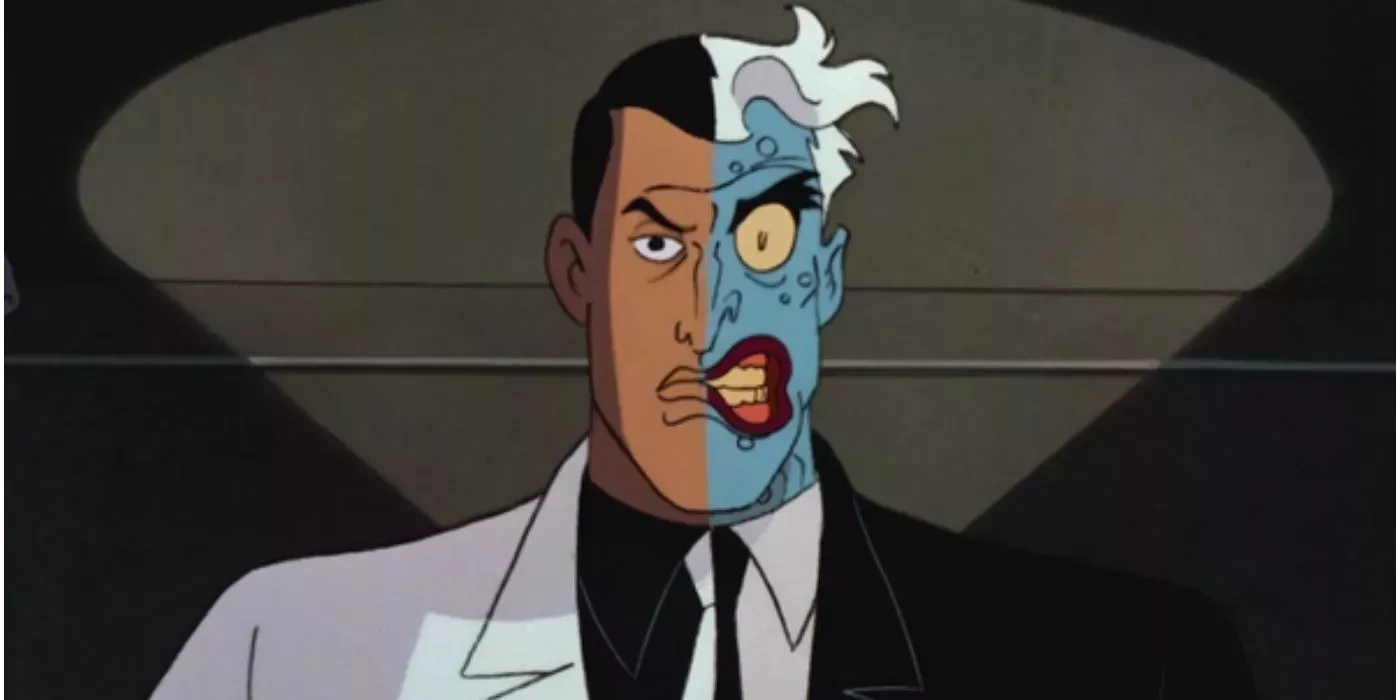 En el DCAU, Dos Caras fue el villano en el episodio de debut de Tim, "Pecados del Padre". "Shifty" Drake también había estado al servicio de Harvey. Drake abandonó a su hijo después de robarle a Dos-Caras. Dos Caras envió a los secuaces que le quedaban para cobrar la deuda de Drake a Tim, lo que finalmente llevó al encuentro de Batman y Tim.