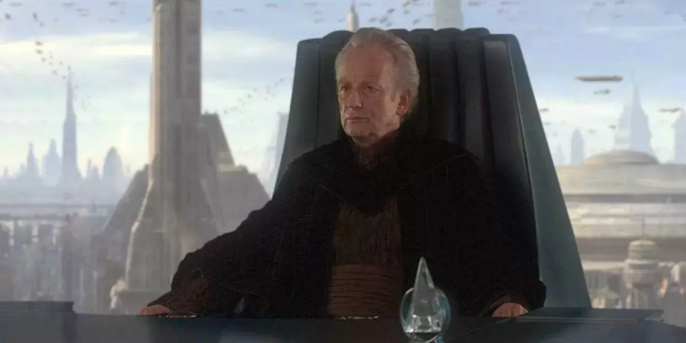 La trilogía de precuelas de La guerra de las galaxias trazó el ascenso de Palpatine, de senador de Naboo a emperador de la galaxia. George Lucas siempre había planeado la forma básica del ascenso de Palpatine al poder, sabiendo que Palpatine transformaría la República en el Imperio aprovechando la desconfianza de la gente en la burocracia y en un sistema que él mismo había saboteado. En La amenaza fantasma, Palpatine fue elegido Canciller Supremo de la República.