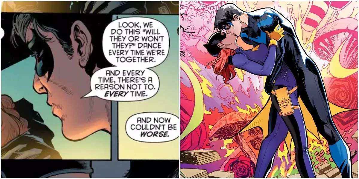 Aparte de los matrimonios que sólo duran una noche o que sólo ocurren en eventos de crisis que a nadie le importan, el plan actual de DC para el romance entre Dick Grayson y Barbara Gordon es provocar a los lectores y poner a los personajes en una situación continua de "lo harán o no lo harán".