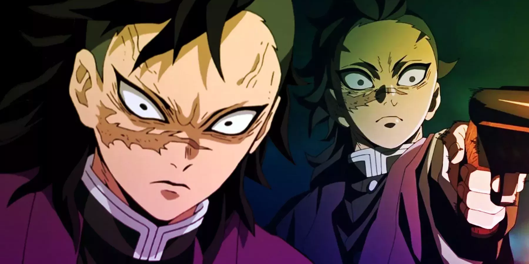 Genya Shinazugawa es un inusual cazador de demonios que no pudo aprender ningún tipo de estilo de respiración, por lo que, en su lugar, aprendió la técnica de Acción Repetitiva de Gyomei Himejima, el Hashira de Piedra, para aumentar su poder. Genya también utiliza una escopeta de doble cañón cargada con munición antidemoníaca, aunque no fue suficiente para acabar con Hantengu, la Luna Superior 4.