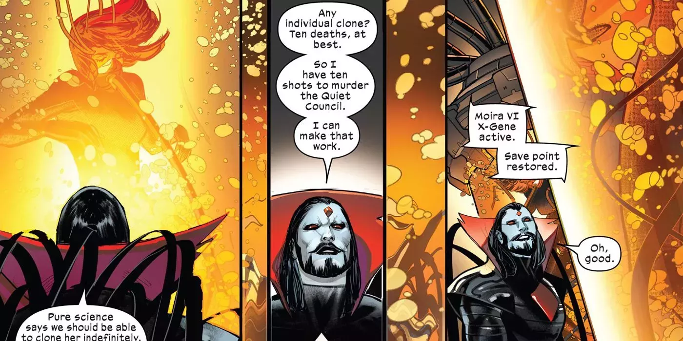 Moira MacTaggert y su singularidad son la razón por la que Krakoa fue posible en primer lugar. Por desgracia, también podría ser la razón de su caída. En manos de Siniestro, los clones eran poco más que herramientas que podían ayudarle con un único plan para ayudar -y ayudarse a sí mismo- a crecer en poder.