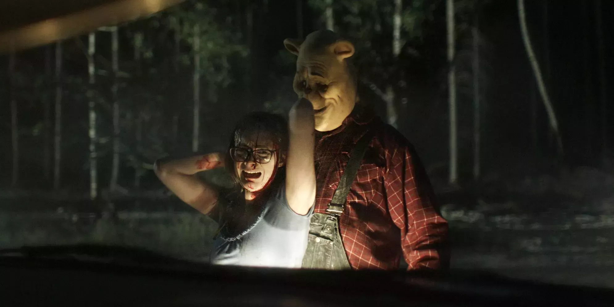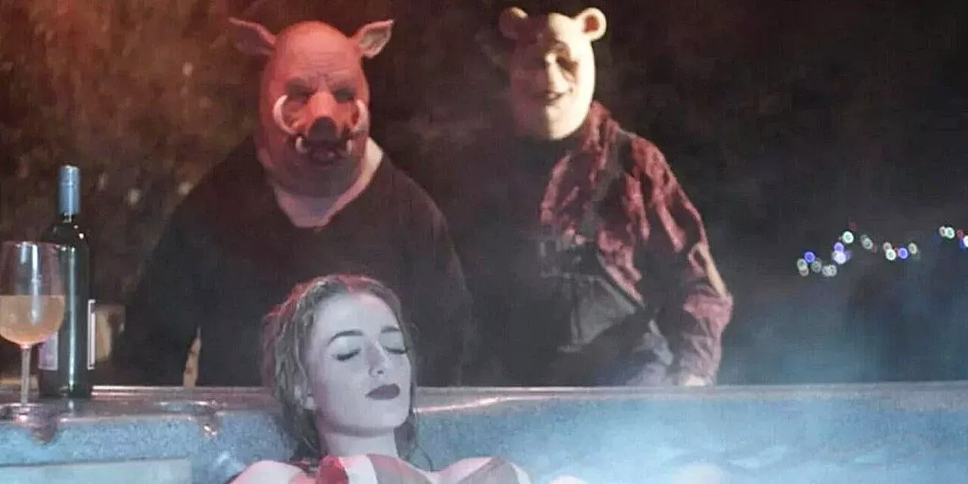 Pooh y Piglet ya no son dulces ni inocentes aquí. Se han convertido en los antagonistas carniceros de la película. Acechan y persiguen con saña a un grupo de universitarias, al tiempo que encarcelan a Christopher Robin. Lo único novedoso es la forma en que la película vuelve a encarnar a sus antiguos héroes de la infancia, pero hace que la película parezca un slasher clásico.